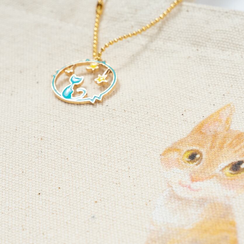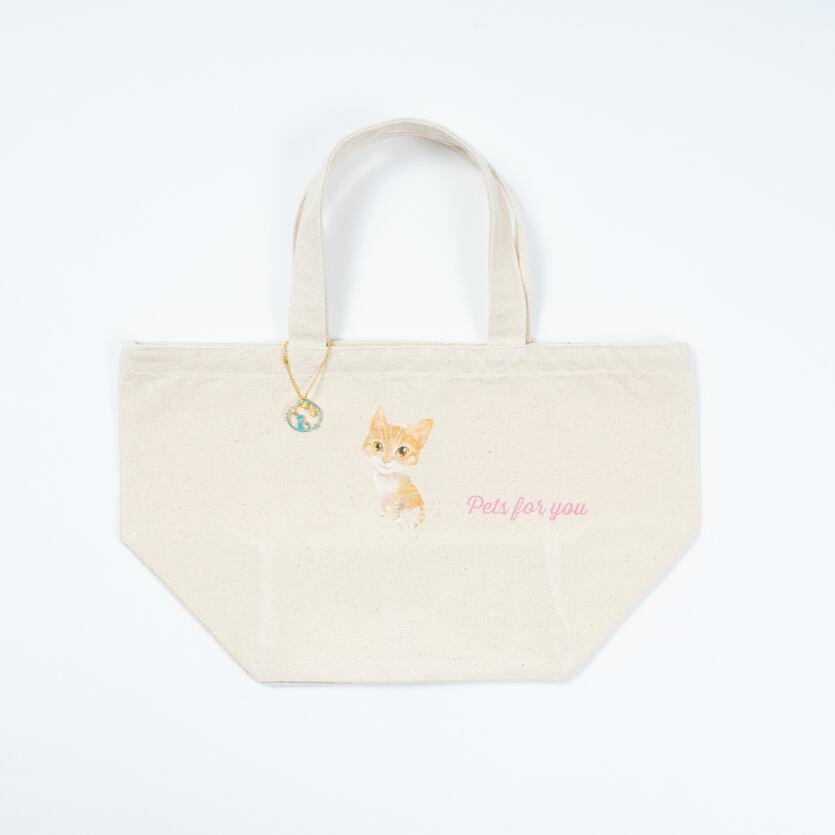 白い布製のバッグです。猫ちゃんの可愛いイラストが描かれている限定品です。