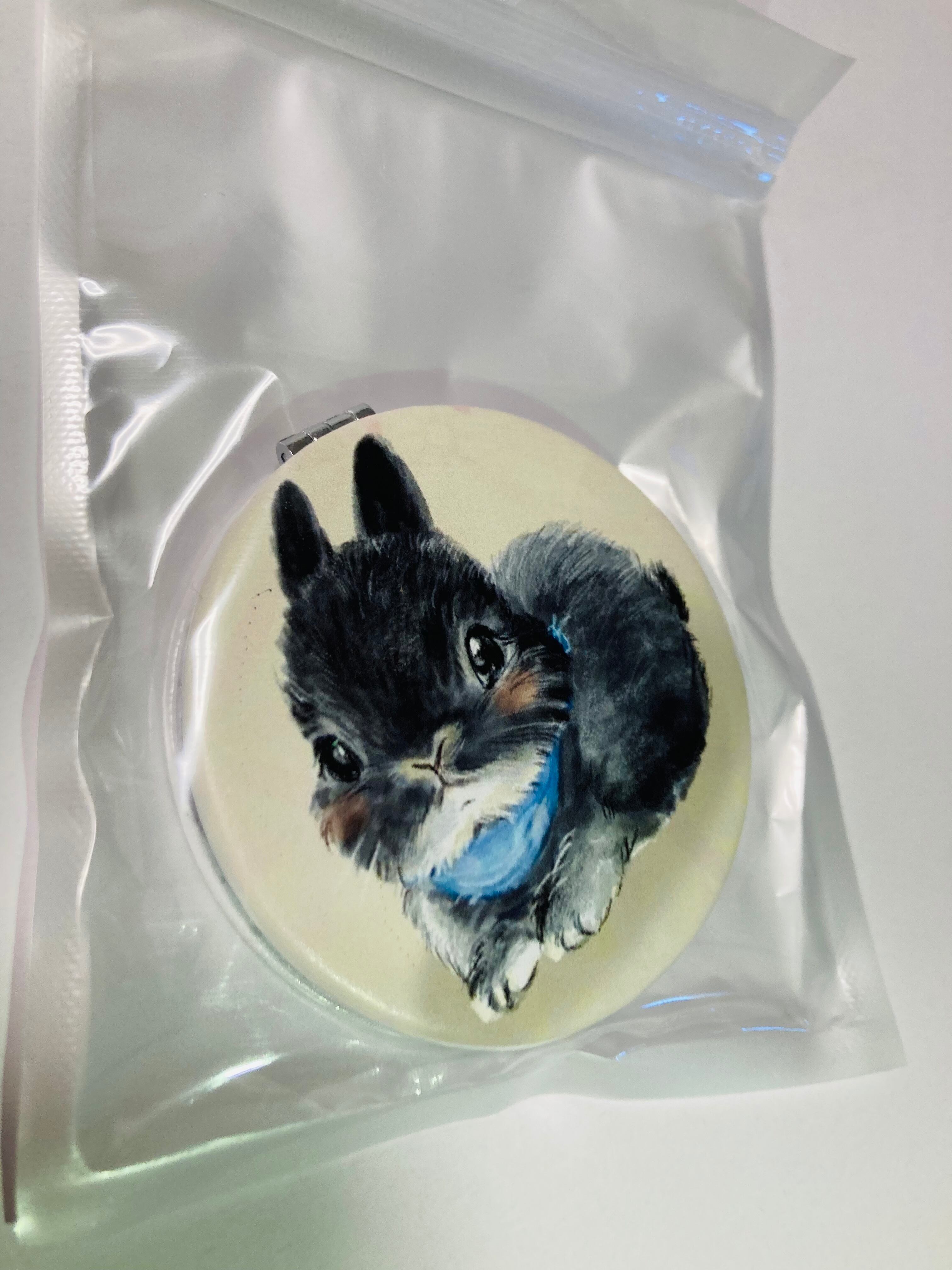 かわいいうさぎちゃんの丸形ミラーです。持ち歩きにも最適な手のひらサイズ(直径7cm)です。