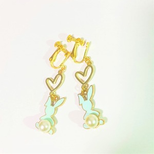 1品1品手作りのうさちゃんイヤリングです。ハートの金具とパールがかわいいタイプです。